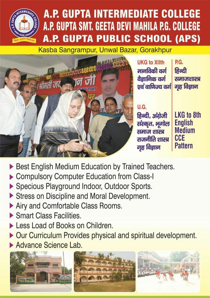 मेगा स्टार अमिताभ बच्चन का गहरा जुड़ाव गोरखपुर से है। उनवल कस्बे में स्थित एपी गुप्ता एजुकेशनल सोसायटी के संचालक से उनके पुराने ताल्लुकात हैं। इसलिए कॉलेज के वार्षिकोत्सव में कई बार सांसद जया बच्चन आ चुकी हैं। तीन जून को महानायक अमिताभ बच्चन और राज्य सभा सांसद जया बच्चन की शादी की सालगिरह पर मैनेजिंग डाइरेक्टर अमित गुप्ता ने फेसबुक पर मेगा स्टार की शादी की तस्वीर शेयर करते हुए बधाई और शुभकामनाएं दी थीं। उनवल कस्बे के लोगों को विद्यालय के वार्षिकोत्सव का इंतजार रहता है। मेगा स्टॉर के परिवार से जुड़ाव को लेकर लोगों को खुशी मिलती है।