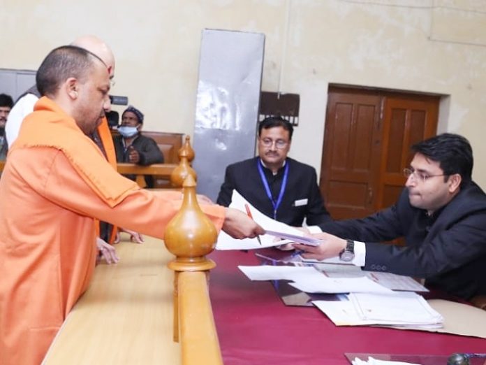 गोरखपुर। मुख्यमंत्री योगी आदित्यनाथ ने यूपी विधानसभा चुनाव के लिए अपना नामांकन कर दिया है। गोरखपुर कलेक्ट्रेट के कमरा नंबर-24 में सीएम के पर्चा भरने के दौरान वहां केंद्रीय गृह मंत्री अमित शाह भी मौजूद रहे। इसके पहले दोनों नेताओं ने एमपी इंटर कालेज मैदान पर एक सभा को सम्बोधित किया।