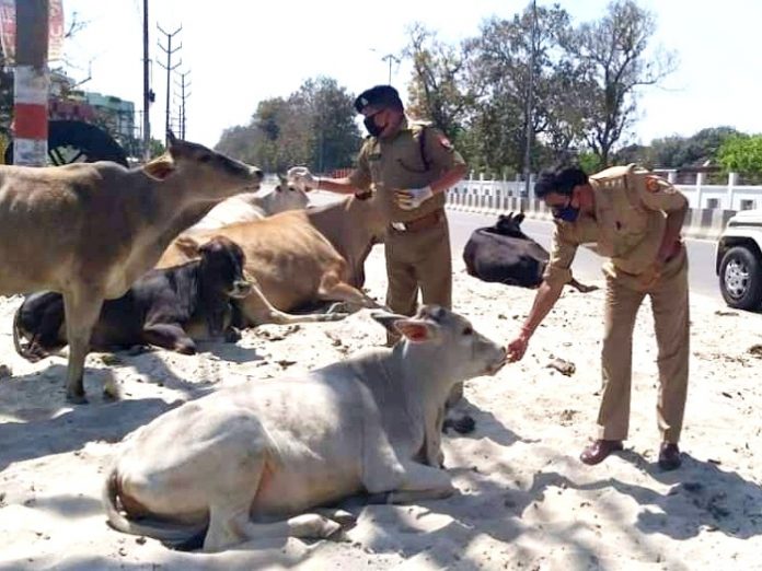 गोरखपुर। जिले में पुलिस का सेवाभाव जारी है। जरूरतमंदों के बीच शनिवार को पुलिस ने भोजन और राशन का वितरण किया। क्राइम ब्रांच की एसओजी टीम के पुलिस कर्मचारियों ने तारामंडल सहित अन्य जगहों पर जनता को खाने का सामान उपलब्ध कराया। इतना ही नहीं, पुलिस ने लावारिस गायों को खाना खिलाया। शनिवार को जिले में विभिन्न जगहों पर पुलिस की अलग—अलग टीमों ने 11 हजार लोगों को भोजन कराया।